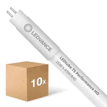 Il Confezione Multipack 10x Ledvance Tubo LED T5 Performance (Mains AC) High Output 26W 4000lm - 840 Bianco Freddo | 145cm - Sostitutiva 49W è un tubo LED perfetto per sostituire gli standard tubi fluorescenti di 49 W. Con questo tubo LED di Ledvance ti assicuri una lunga durata e 5 anni di garanzia.