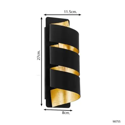 Eglo Luce Da Parete Elizondo Nero, Oro | Adatto per E14