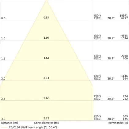 Il codice colore è una combinazione di resa cromatica (CRI) e colore della luce (Kelvin). La prima cifra indica la resa cromatica (1 = resa del colore molto bassa, 9 = massima resa del colore), mentre la seconda e la terza si riferiscono al colore della luce. Esempio: il codice colore 830 indica una buona resa cromatica (8) e luce bianca calda (3000K). |