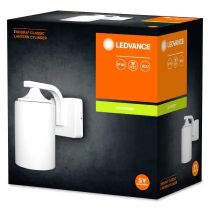 La lanterna Endura Cilindro Classico di Ledvance è un elegante apparecchio d'illuminazione da parete con attacco per lampadine E27. Questo alloggiamento viene fornito senza lampadina, ma questo è facilmente risolvibile! Su Lampadadiretta puoi scegliere tra una gamma di lampadine LED E27 delle migliori marche, che possono essere ordinate insieme a questa lampada da esterni..