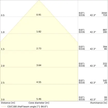Il codice colore è una combinazione di resa cromatica (CRI) e colore della luce (Kelvin). La prima cifra indica la resa cromatica (1 = resa del colore molto bassa, 9 = massima resa del colore), mentre la seconda e la terza si riferiscono al colore della luce. Esempio: il codice colore 830 indica una buona resa cromatica (8) e luce bianca calda (3000K). |