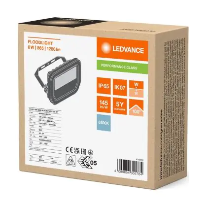 Ledvance Proiettore LED Aluminium Bianca 8W 1200lm 100D - 865 Luce Del Giorno | IP66 - Simmetrico