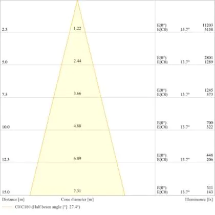 L'apertura del fascio luminoso indica l'angolo del fascio di luce proveniente da una lampada o lampadina. Si misura in gradi (D) e più piccolo è l'angolo, più piccola è l'apertura del fascio di luce.