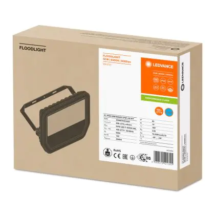 Descrizione Ledvance Proiettore LED GEN 3 Bianca 50W 6000lm 100D - 865 Luce del Giorno | IP65 - Simmetrico - Sostitutiva 100W