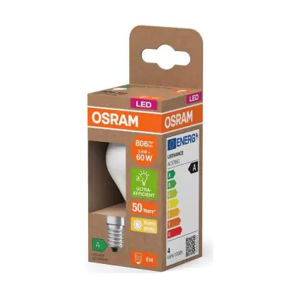 La lampada Osram LED Classic LED E14 Pera Filamento Ghiaccio 3.8W 806lm - 827 Bianco Molto Caldo | Sostitutiva 60W è il sostituto perfetto per le tue vecchie lampade 60W con attacco a vite piccolo E14 grazie alla sua tecnologia LED. Passare a LED ti offrirà molti vantaggi!