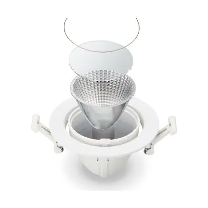 Un apparecchio con design inclinabile consente di dirigere l'illuminazione in modo specifico su un oggetto o una superficie. Ciò può rivestire un ruolo particolarmente importante nei negozi (mettendo in risalto una nuova collezione) o nelle gallerie (accentuando le opere d'arte). Può anche influenzare il comportamento di acquisto o l'interpretazione dei visitatori.