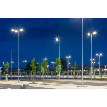 Se vuoi sostituire un vecchio apparecchio di illuminazione stradale scegli una nuova lampada LED. I LED hanno alta potenza luminosa e basso consumo energetico, come questo apparecchio che consuma solo 81 W. Ha un ciclo di vita di circa 90000 ore, che fa risparmiare anche sui costi di manutenzione e sostituzione.